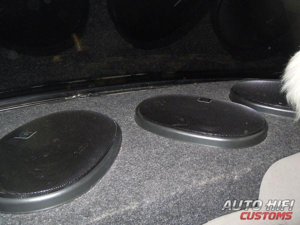 Но похоже совершил ошибку- сверху динамики закрыты карпетом, которым обтянута полка. Сделал это для того, чтобы не уперли блины вместе с полкой - машина была нетонированой.