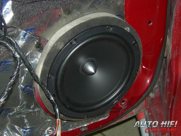 2) фронт Focal Auditor R-165S2,играет через кроссовер сделана шумка передних дверей, мидбасы в проставочных кольцах