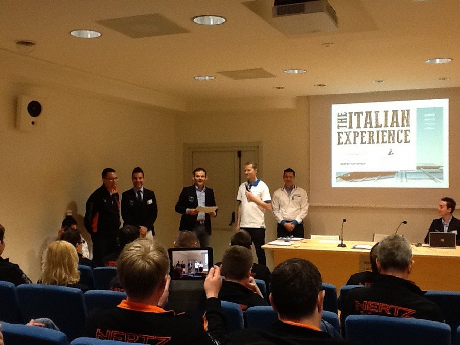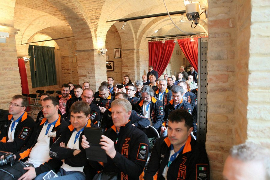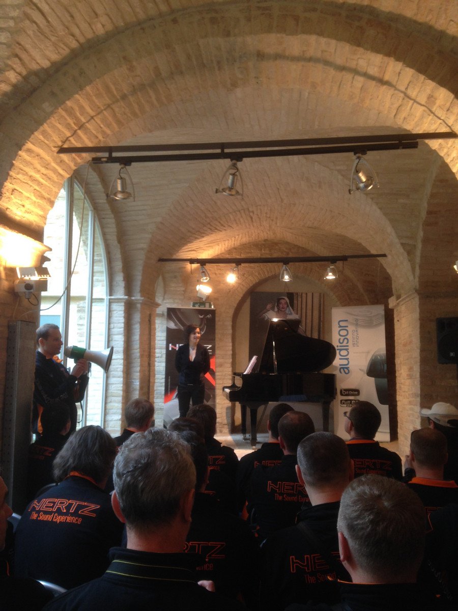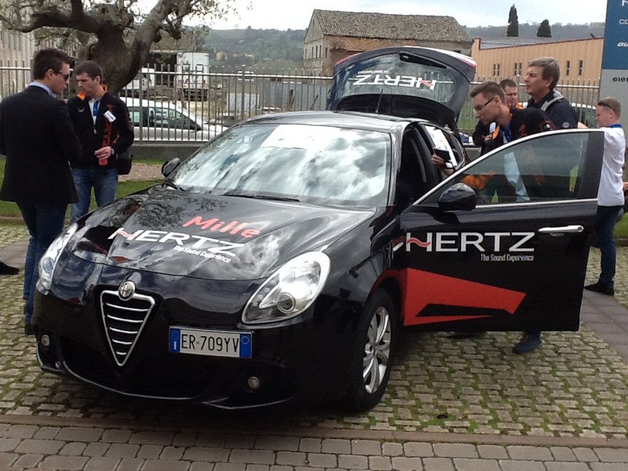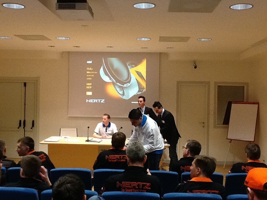 Утро первого дня встретило нас ветреной погодой и пасмурным небом. Но встречающие нас итальянцы своей энергией, заводным настроением и оптимизмом заставили забыть все неприятные происки погоды. Первый тренинг был посвящен бренду Hertz, проходил в уютном зале, оборудованном проектором, удобными сидениями и топовой акустикой Hertz Space, которая к сожалению уже не выпускается, но по мнению авторитетного установщика музыки на BMW Павла Назарова не имеет аналогов по звуку при установке в штатные места под сидения.