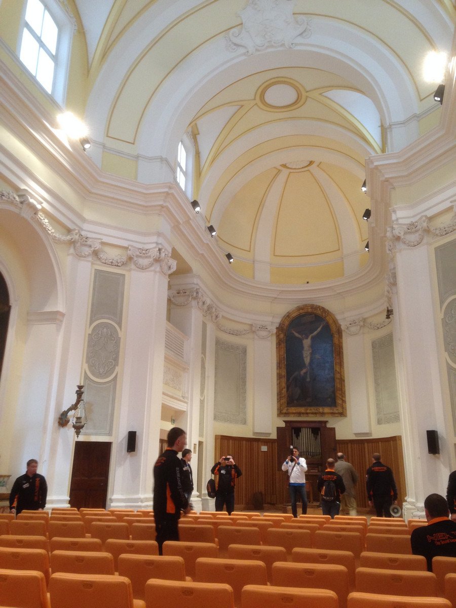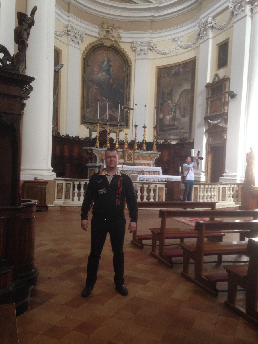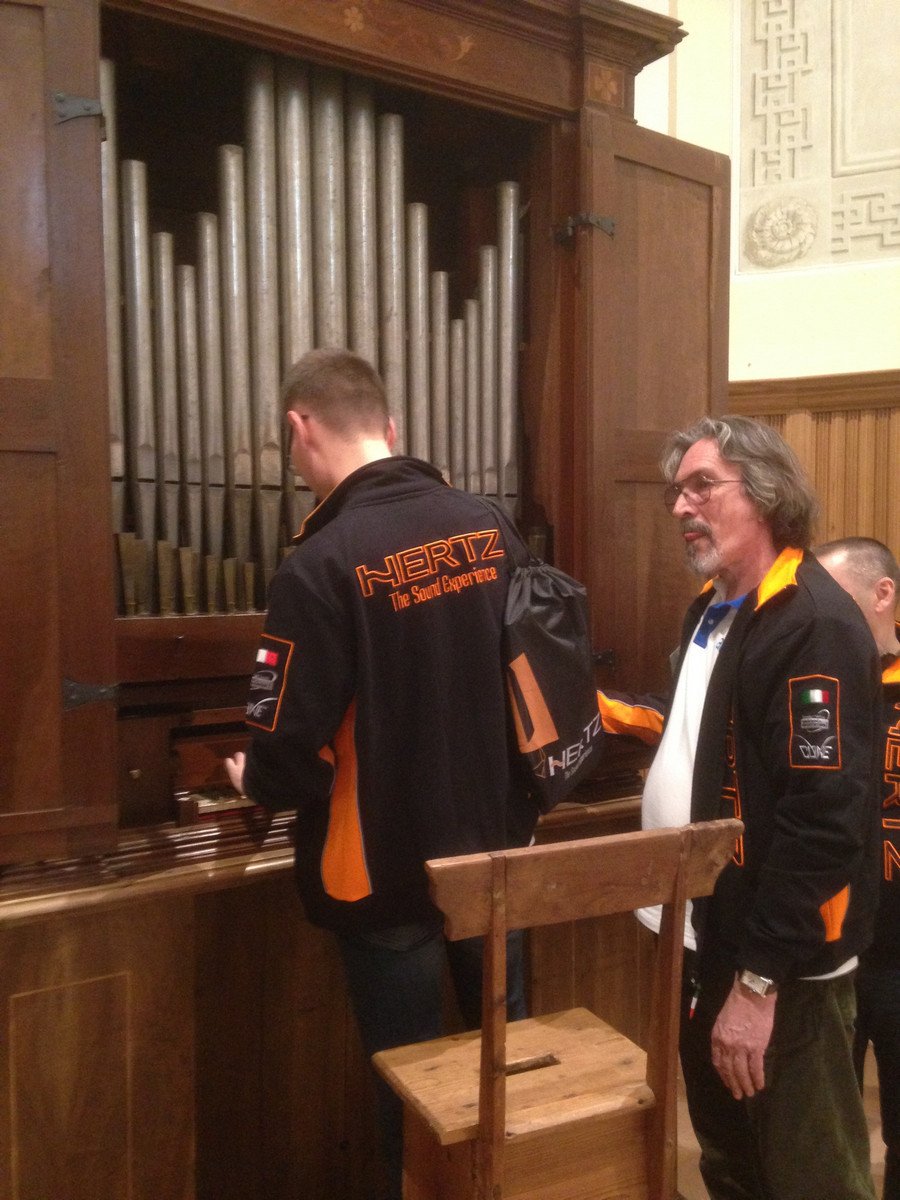После бурных дискуссий и плотного обеда нам утроили экскурсию по красивому городку Потенца Пичена с прослушиванием великолепной музыкальной программы в живом исполнении, посещением красивых церквей, памятного места, откуда начиналась Elettromedia, а также бесподобной демонстрации звука настоящего органа от гуру Андрея Вячеславовича Елютина, которому не дал войти в раж какой то местный сторож и в панике отключил орган от питания, закрыв его от нас своей грудью.