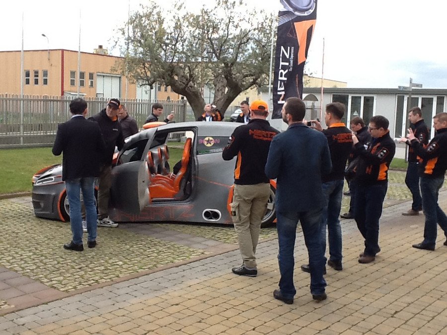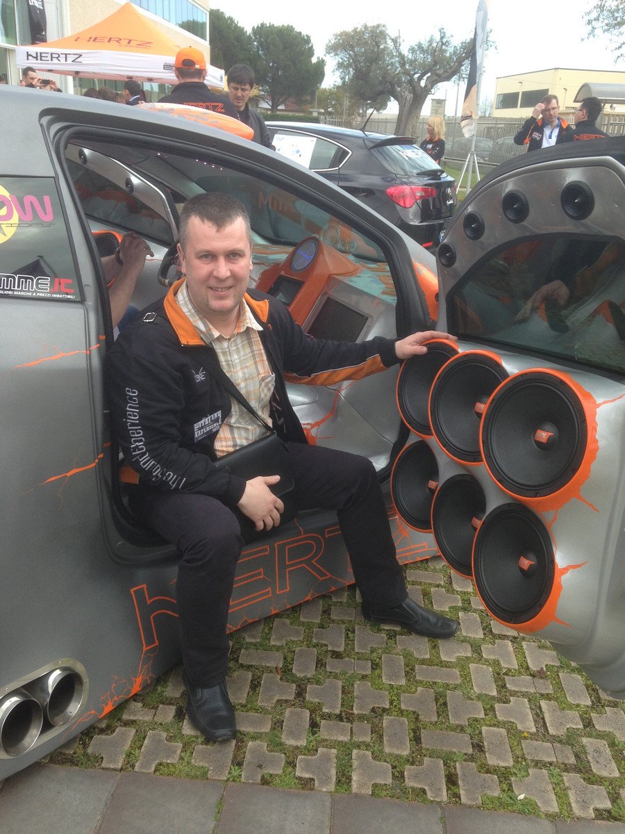 Выйдя на перекур перед офисом компании Elettromedia нам были продемострированы два демо-кара на компонентах Hertz - один на качество звука, другой на давление. Машины оставили приятные впечатления, как по уровню инсталляции, так и по качеству его исполнения.
