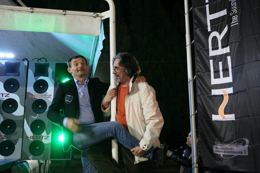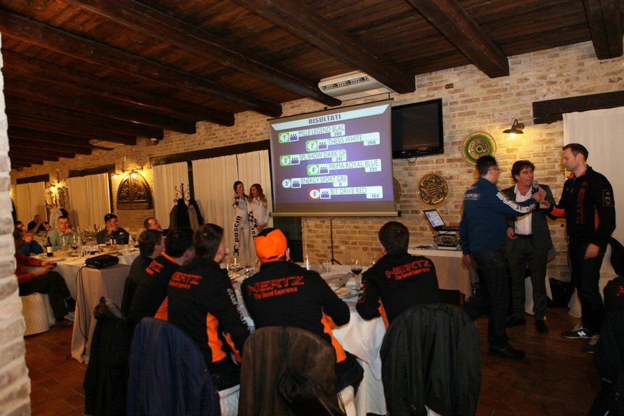 И уже ближе к ночи на дискотеке, совмещенной с хорошим рестораном нас торжественно наградили усилителями Audison AV5.1k HD по одному в руки за 3 место в общем зачете. Команде занявшей второе место вручили Hertz Mille Legend. MLK 1650.3. А за первое место, занявшая его команда получила Audison Bit Play HD. Из всех перечисленных наград, нам наша почему то понравилась больше всех. Спасибо Tchernov Audio и Elettromedia!