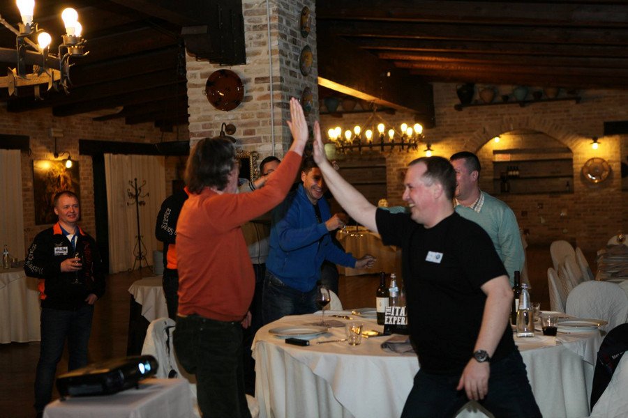 Вторым этапом, после проведенной в ресторане викторины были гонки на картах. Я в России более десятка раз ездил на разных картинг-дромах, но по сравнению с итальянским они все отдыхают, что конечно же печально. Офигительно интересно и качественно сделанная трасса с хорошим покрытием, свежий воздух, несмотря на закрытое помещение, бодрые и живые машины, из которых не брызжет масло в разные стороны. Качество подхода к картингу порадовало. Но вот результаты нашей команды не особо. Заняли мы 5 место, но при этом отлично поездили и провели время.