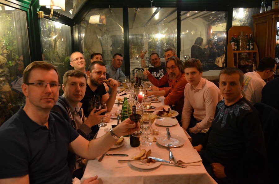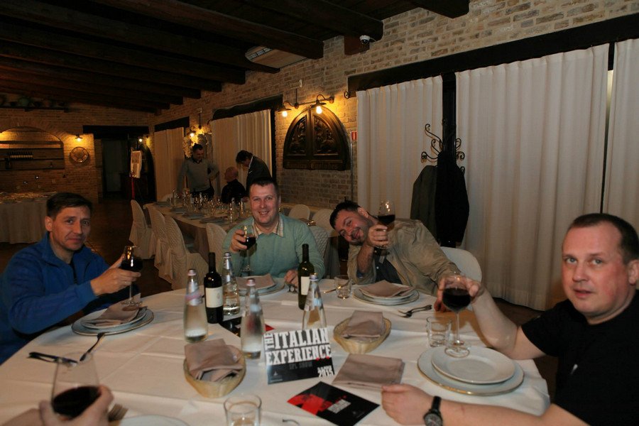 После экскурсии нам пригласили на ужин, в семейный итальянский ресторан. В нем была проведена викторина, в которой наша команда SPL Show, в основном благодаря нашему капитану и гуру автозвука - Андрею Елютину, заняла первое место с хорошим отрывом от всех остальных. Что мы тут же весело и отпраздновали закрепив приятным вином.