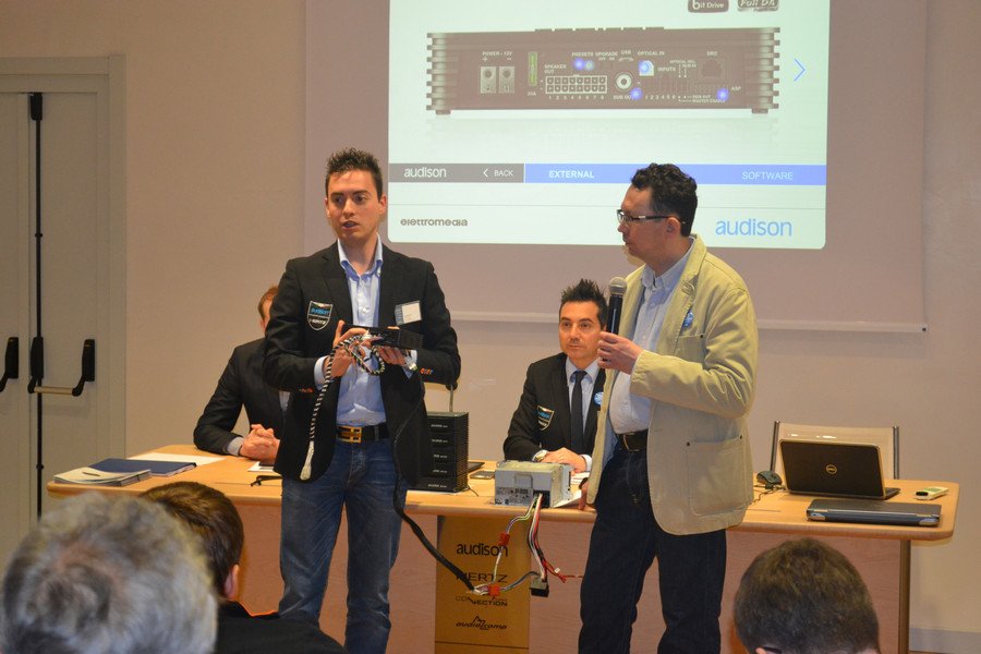 Второй день был посвящен продукции бренда Audison. На тренинге нас встретил один из основателей и владельцев компании Elettromedia. Интересный факт, что бизнес это семейный и у руля стоят те люди, которые когда то его начинали. Это говорит о качественном подходе к любимому делу и стабильности брендов Elettromedia. И результат на лицо - у компании есть много продуктов, аналогов которым нет ни у кого в мире даже близко!