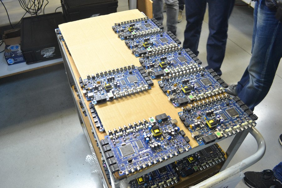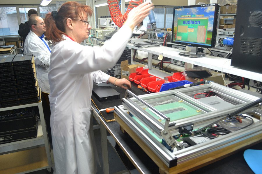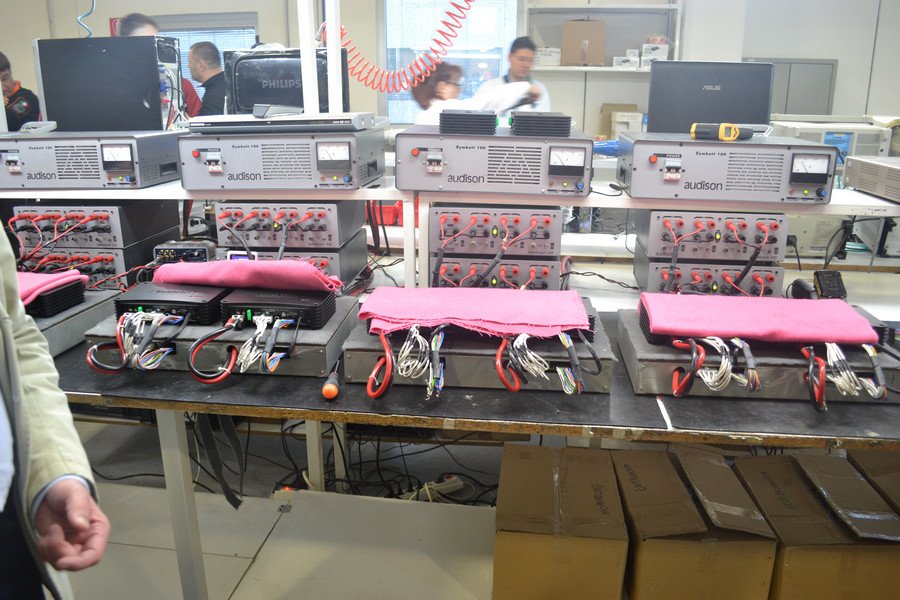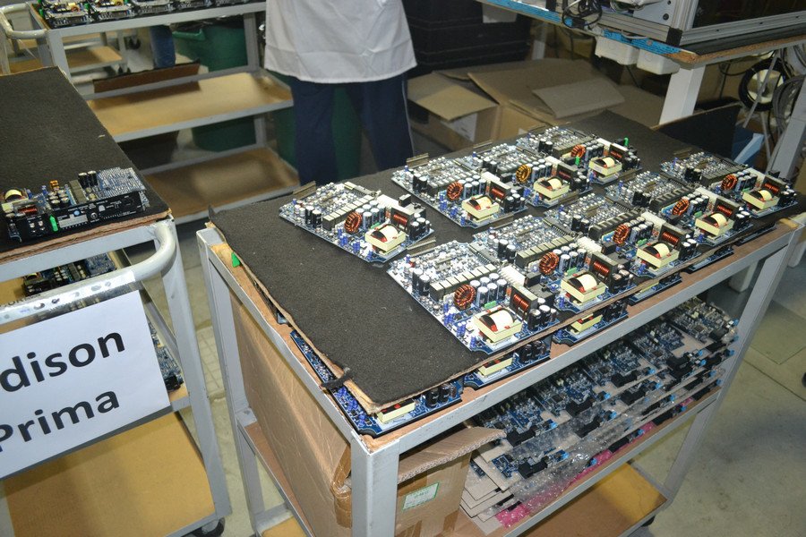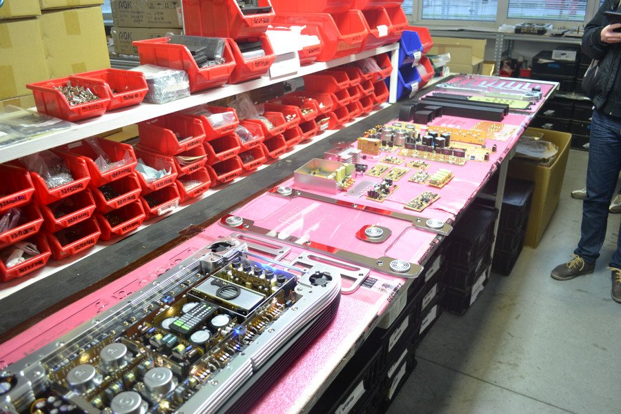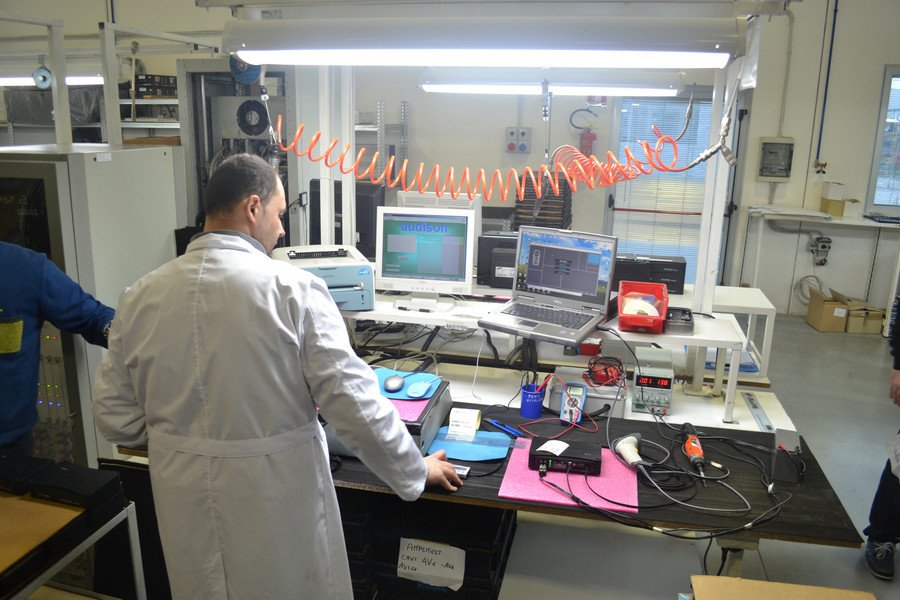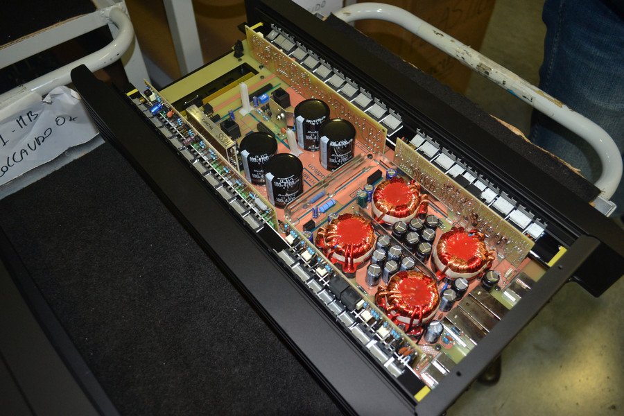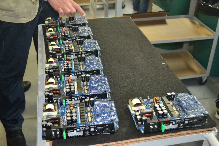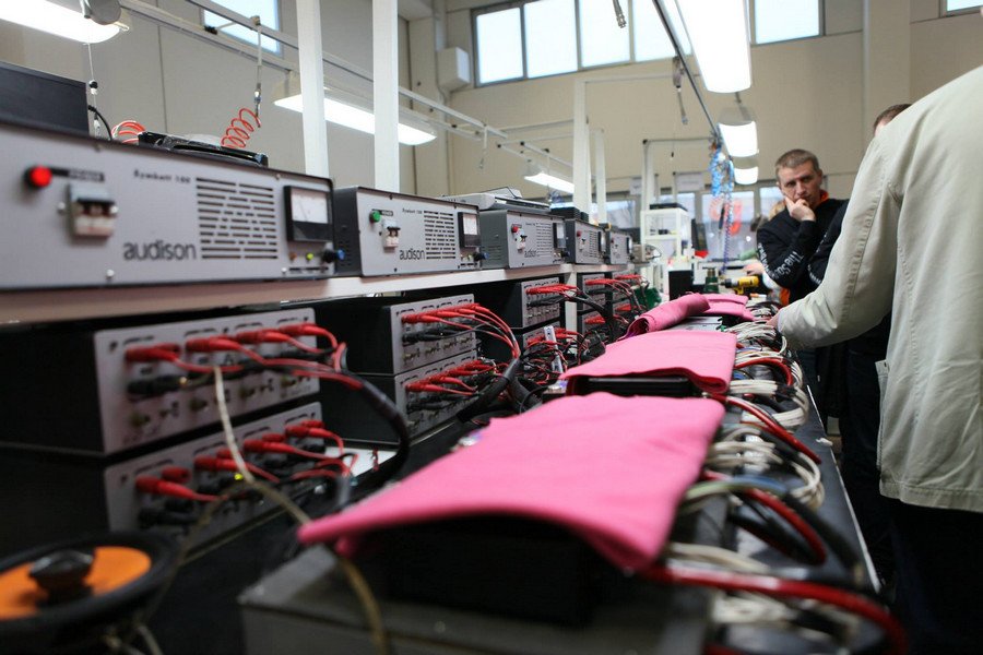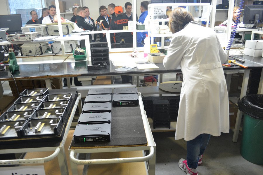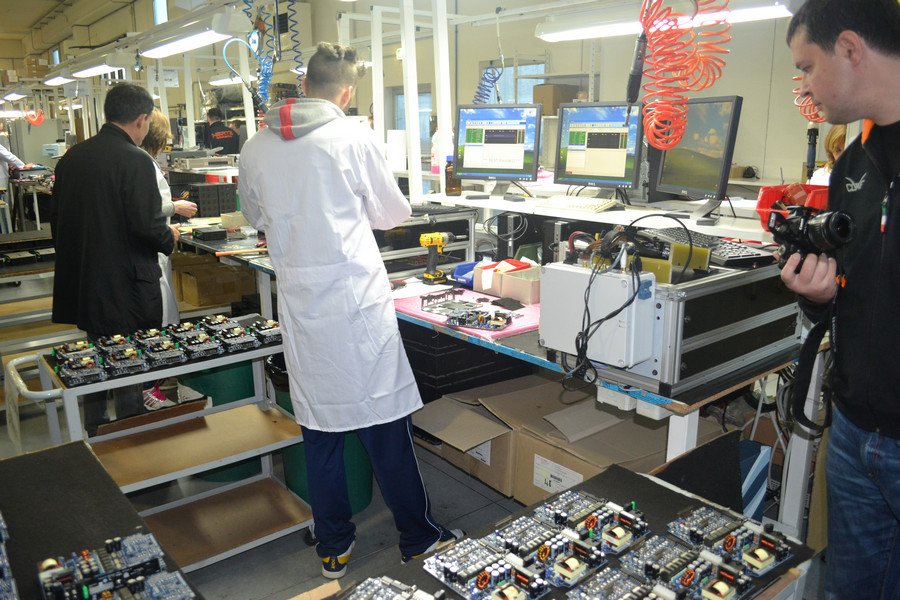 В этот же день мы съездили на производство Elettromedia в Потенца Пичена. Нам подробно и с рассказом показали все этапы сборки процессоров и усилителей. Показали как они проходят диагностику на соответствие своим параметрам, как проходит тестирование на перегрев и короткое замыкание. В целом линия произвела приятное впечатление - все чисто, аккуратно и ответственно.