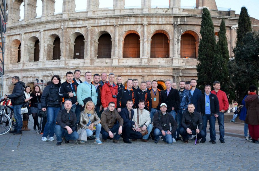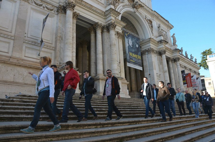 И в тот же день, отдохнув часик после переезда мы отправились дружной толпой гулять по Риму. Встретил нас вечный город протестом на площади с красными флагами с серпом и молотом, а также демонстрацией против арабского государства. Но это не чуть не помешало нам насладиться красотой архитектуры, памятниками, рассказом экскурсовода, которая бегала так быстро, что мы за ней еле поспевали, но смогла в 3 часа вместить массу интересной информации. Ну а закончилось все как обычно поздним ужином под вино в уютном ресторанчике на берегу реки.