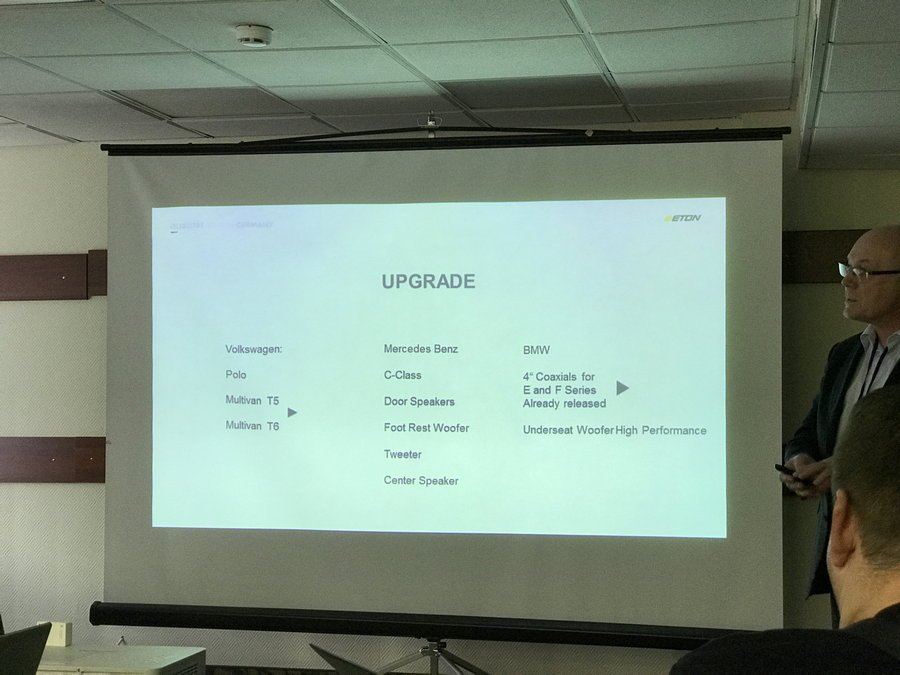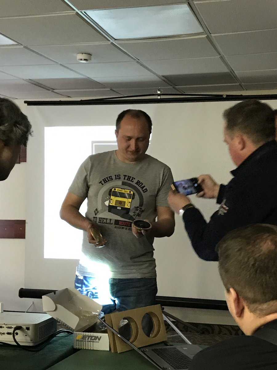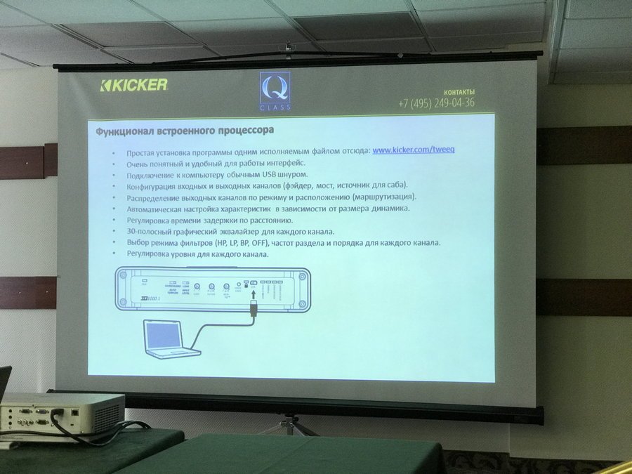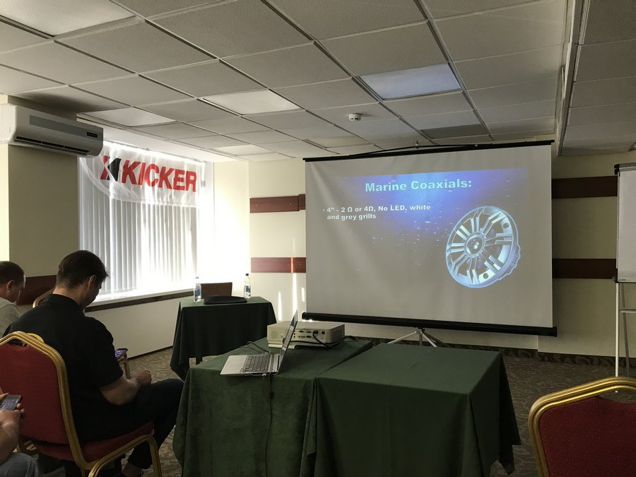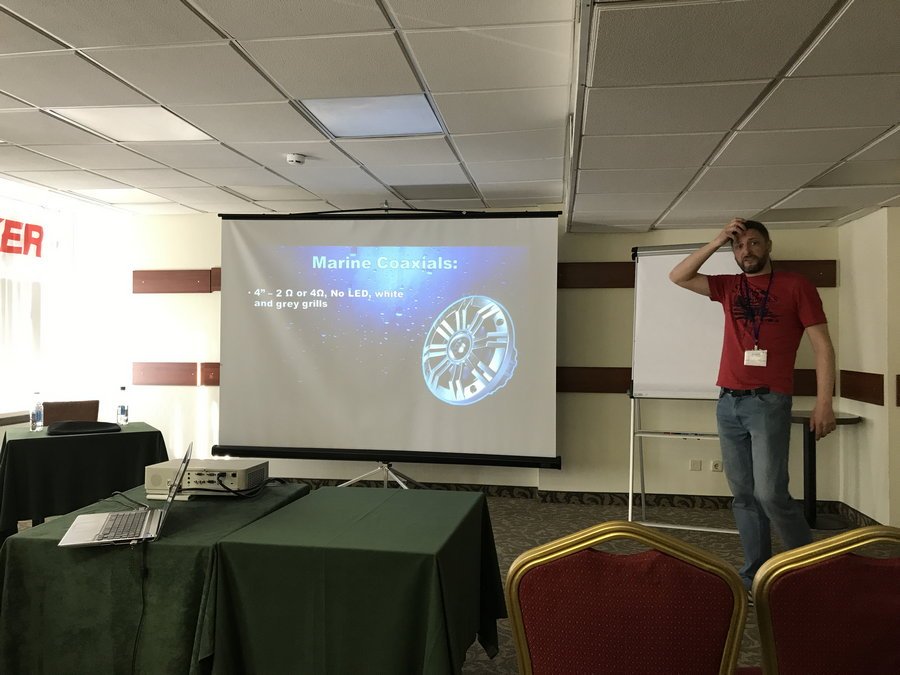 Первая часть конференции была посвящена Kicker. Её провел представитель компании John Myers, с переводом ему помогал технический эксперт компании Алком Дмитрий Домахин.