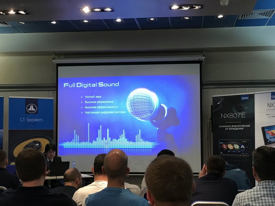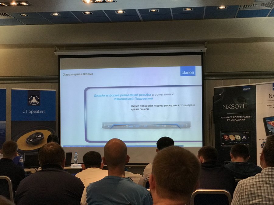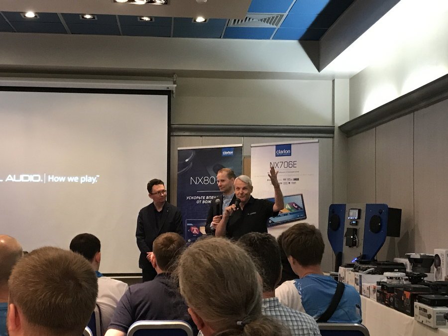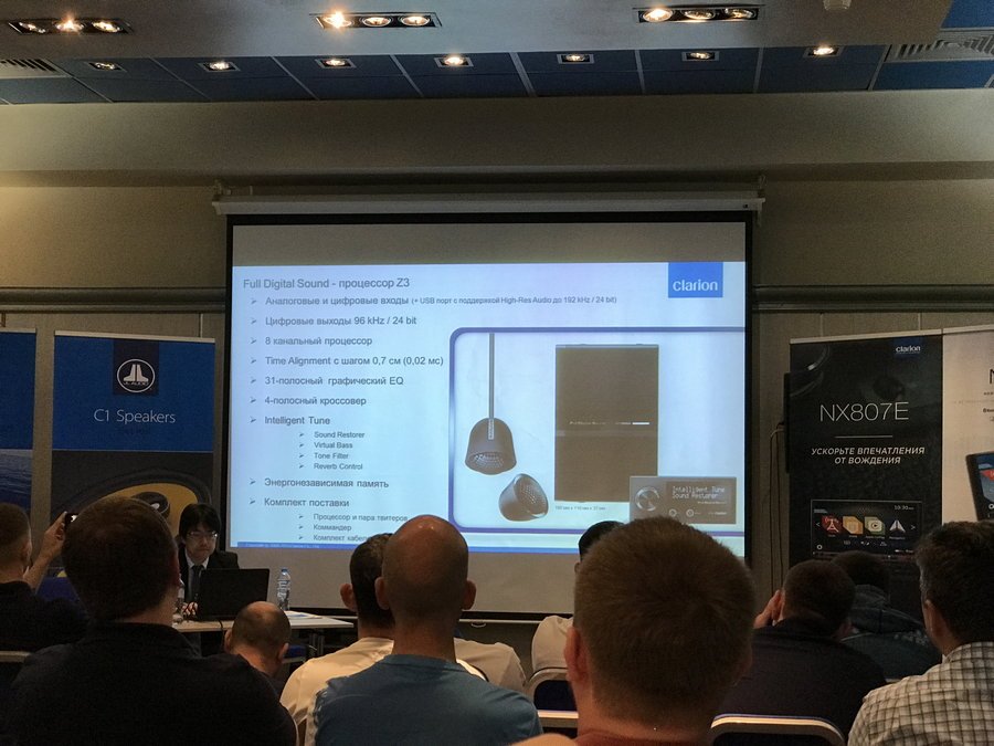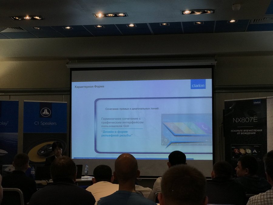 Открыли конференцию представители Clarion Tomio Hasegawa и Sebastien Brame. Один из ведущих мировых производителей более 5 лет не уделял должное время российскому рынку, но наконец то решил исправить эту оплошность. Своим дистрибьютером на нашем рынке компания сделала одного из ведущих представителей Автозвука в России, компанию Чернов Аудио. Появилась возможность нормально работать с продукцией Clarion: отличная техподдержка, гарантия, наличие товара на складе.