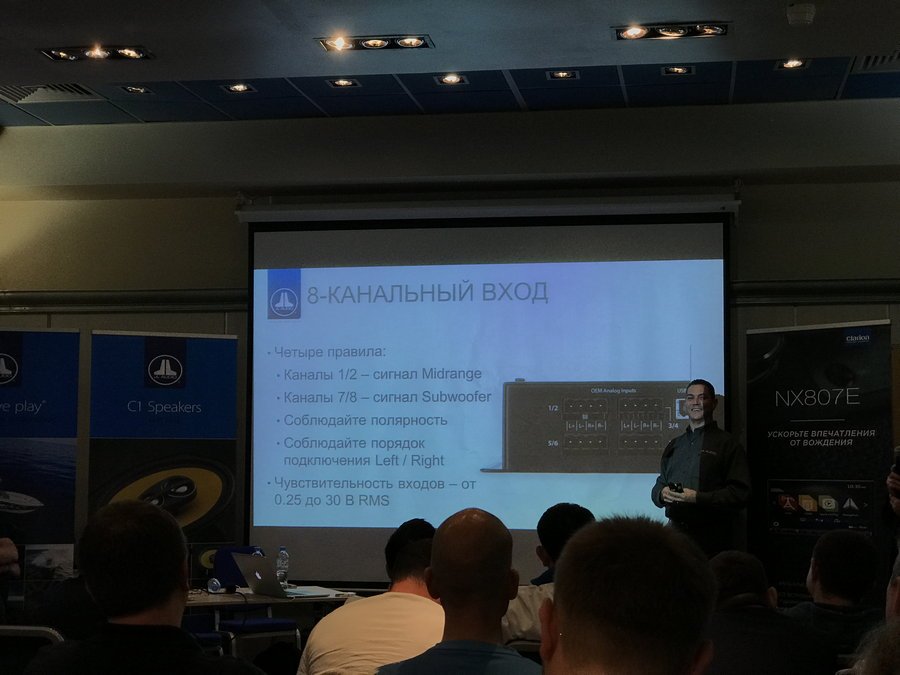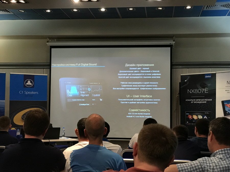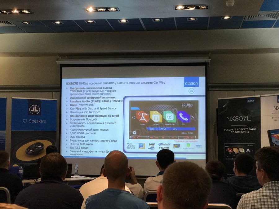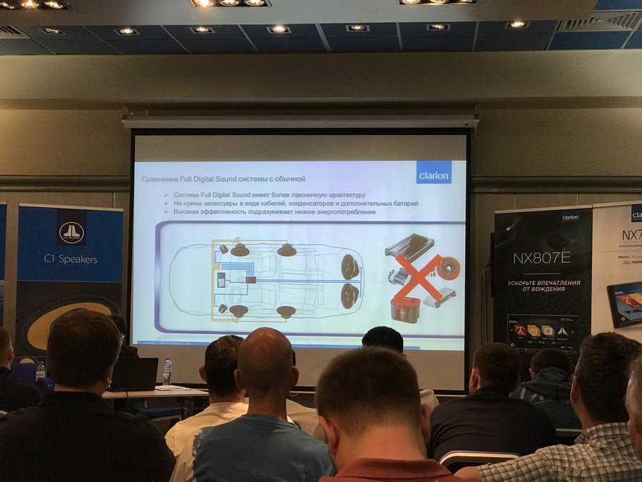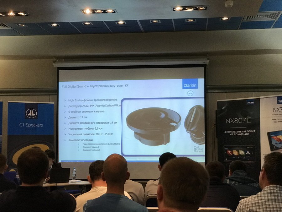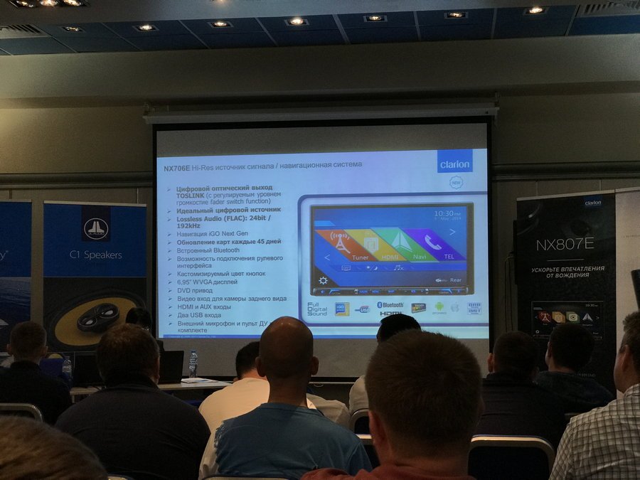 Открыли конференцию представители Clarion Tomio Hasegawa и Sebastien Brame. Один из ведущих мировых производителей более 5 лет не уделял должное время российскому рынку, но наконец то решил исправить эту оплошность. Своим дистрибьютером на нашем рынке компания сделала одного из ведущих представителей Автозвука в России, компанию Чернов Аудио. Появилась возможность нормально работать с продукцией Clarion: отличная техподдержка, гарантия, наличие товара на складе.