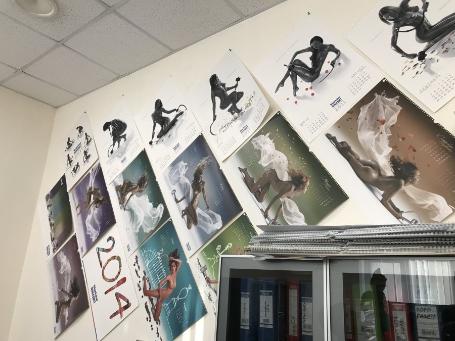 Мы побывали в дизайнерском отделе Старлайн, где гении Photoshop'а и Corel'а разрабатывают дизайн продукции. Здесь можно увидеть знаменитые календари с красивыми девушками, удобную одежду и инструмент для установщиков, книги, ежедневники и сувениры с логотипом компании.