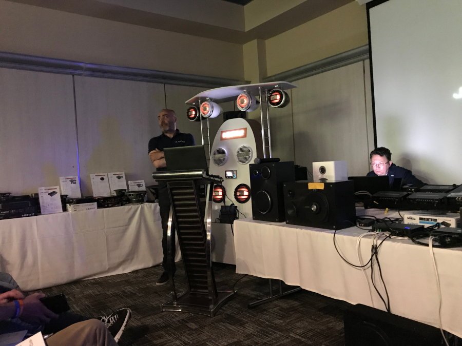 Он рассказал кратко о принципах работы компании JL Audio, у которой не часто выходят новинки, но каждый выпускаемый продукт прорабатывается так тщательно, что долгое время не нуждается в замене или апгрейде. Кстати, в 2015 году компания отметила свой 40-летий юбилей!