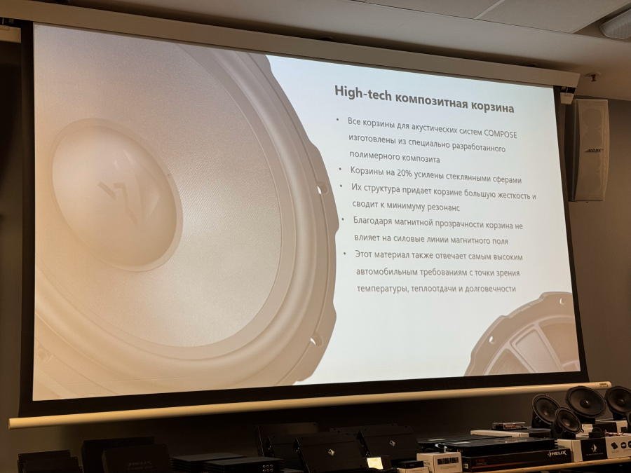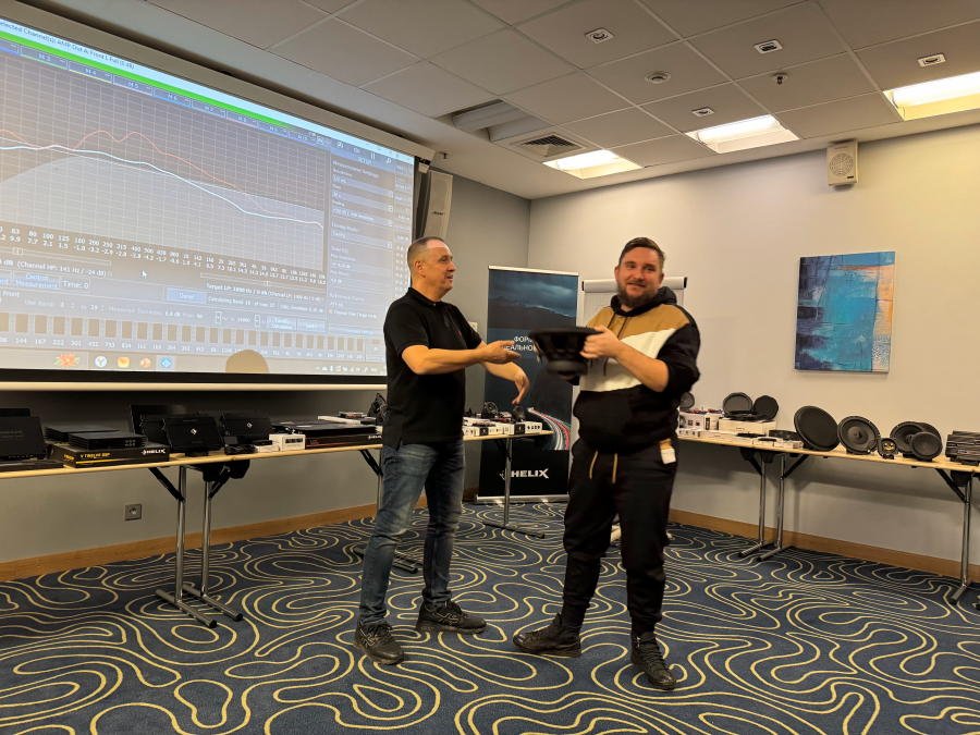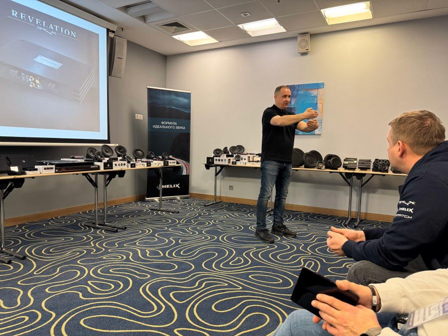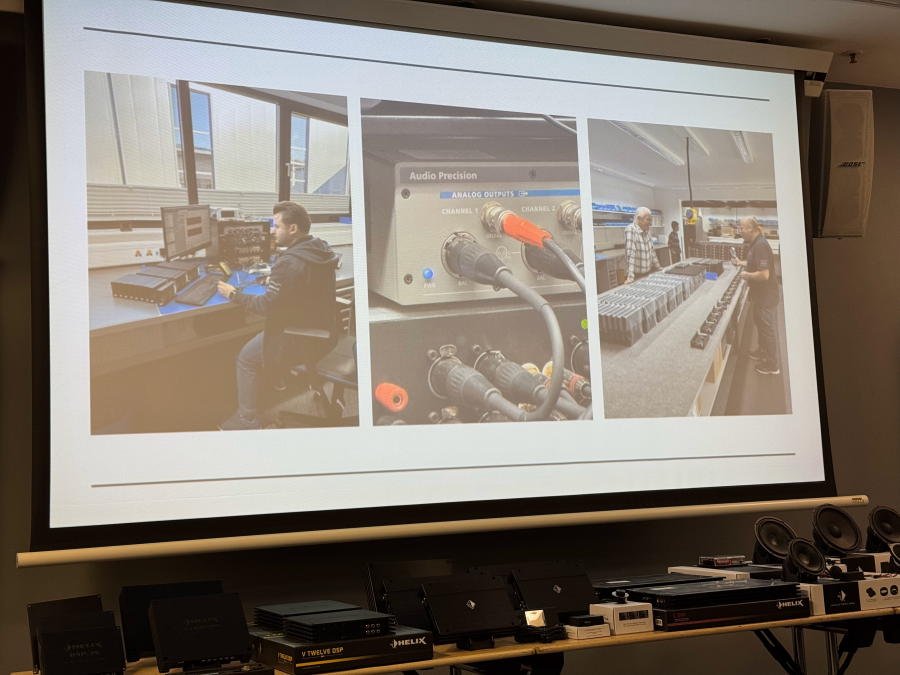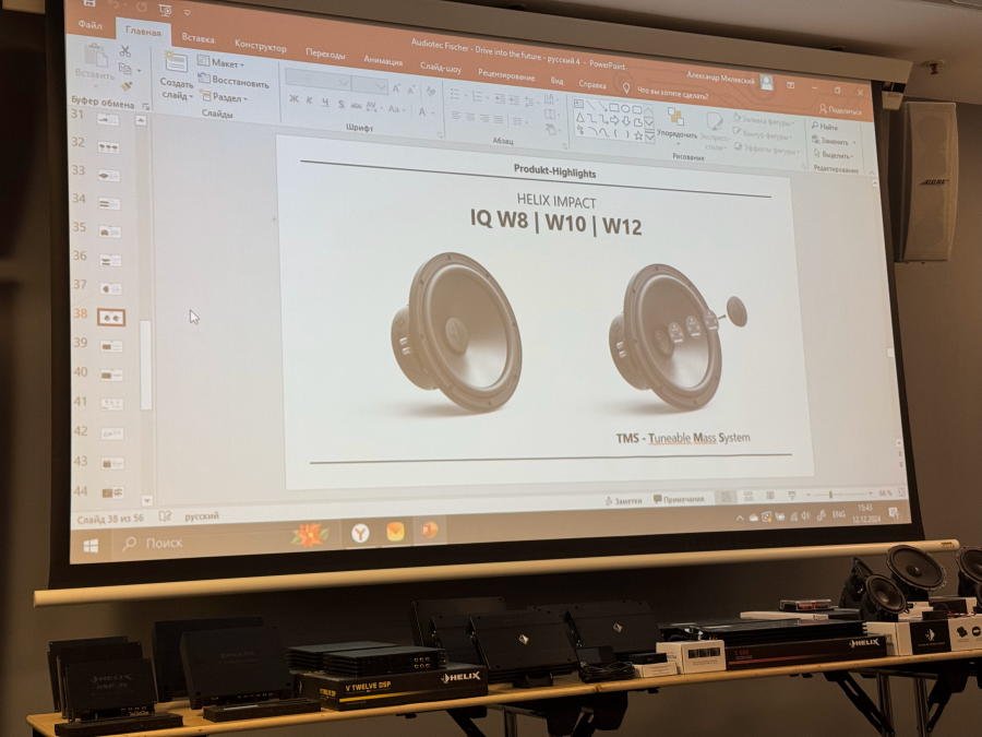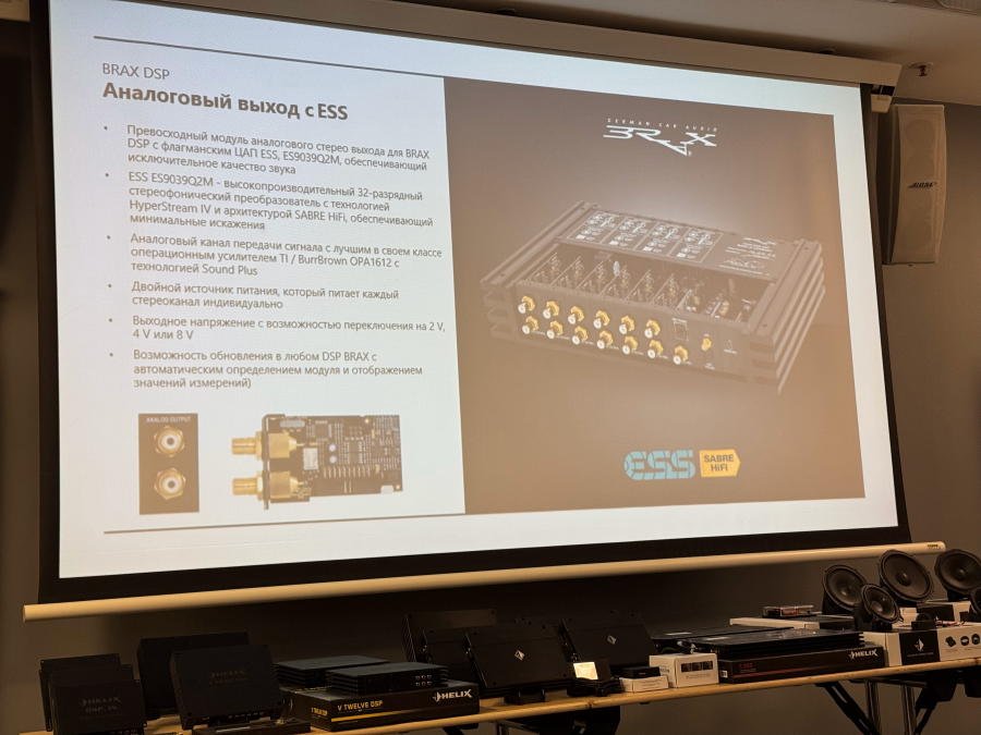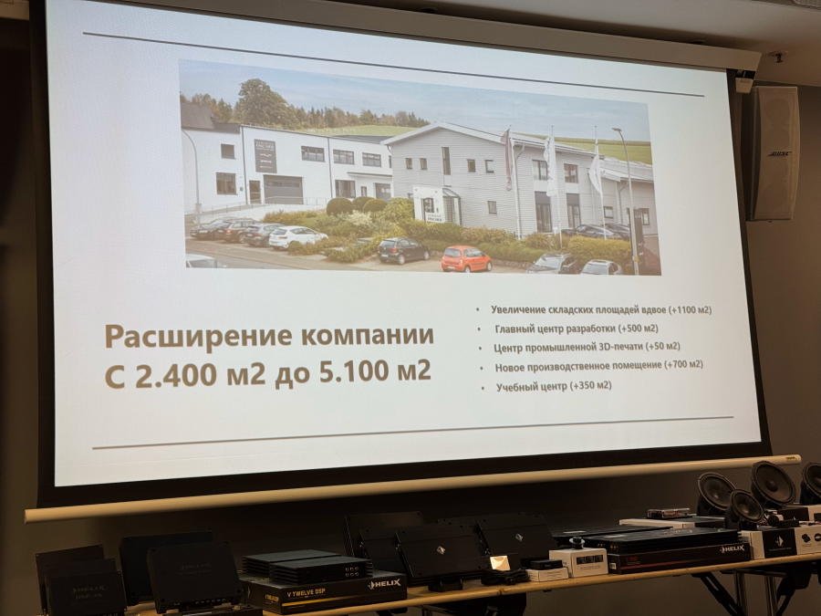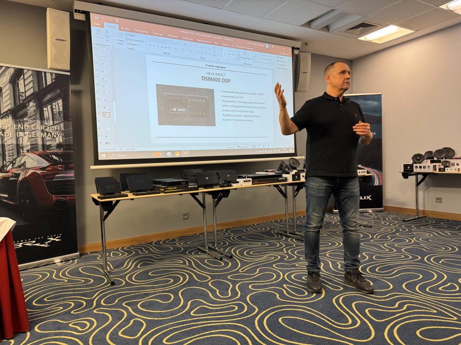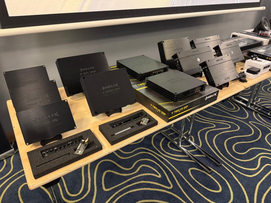Было рассказано о новинках, которые скоро появятся на рынке - процессорном усилителе мощности Helix V Eight DSP Ultimate (12 каналов процессора, 8 из них усилены) и Match UP 12 DSP (13 каналов процессора, 12 из них усилены, пара более мощные, чем остальные).