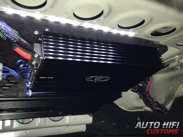 Посмотрел под сиденье пассажира - а там усилитель DD Audio D4.100 моргает сине-красной иллюминацией: