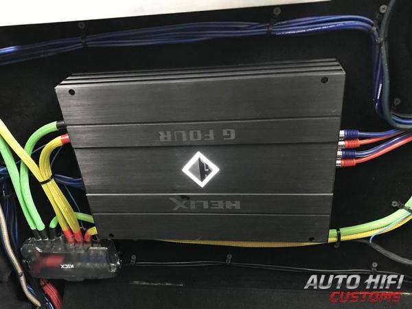 Отдельного внимания заслуживает высокоуровневый вход усилителя Helix G Four. В нем реализовано автоматическое включение по наличию сигнала, при этом сделана защита от системных сигналов, которые могут присутствовать в тракте многих современных автомобилей, когда музыки выключена, но автомобиль еще не «заснул». Также усилитель дает в тракт аудиовыхода штатного ГУ нагрузку, что актуально для большинства моделей VW и Skoda, которые не видя динамиков на тыловых выходах убирают с них сигнал.