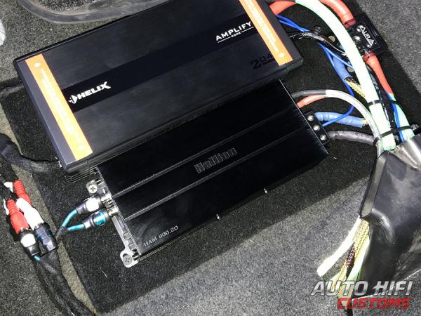 Усилитель Hellion HAM 800.2D компактный, стильный, увесистый и реально мощный. В его названии присутствует числа 2 и 800, но в характеристиках ватт указано чуть поменьше. С одного торца усилителя находятся клеммы подключения питания (калибр 8 Ga) и съемная фишка для подключения акустики или сабвуфера. С другой стороны входа RCA, входа высокого уровня с автоматическим включением по наличию сигнала, вход для подключения дистанционной регулировки громкости (идет в комплекте). Встроенный кроссовер может обрезать частоты как сверху, так и снизу в диапазоне от 20 до 20000 Гц, что позволяет использовать эту модель для чего угодно: сабвуфера в закрытом ящике или с фазоинвертором, мидбасов, среднечастотников, твитеров или просто комплектов акустики подключенной через кроссоверы.