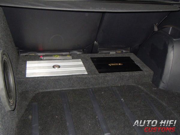 SWR-12D4 x 2 vented box в 4 Ома. Думали, что не раскачает )) Наваливает адово, скажу я вам!!! Это с учетом, что саб на раскачке пока в щадящем режиме. Гейн чуть меньше половины. Я не знаю, что будет если запитать от MAD15... Спасибо спецам AUTO HIFI CUSTOMS за работу! |