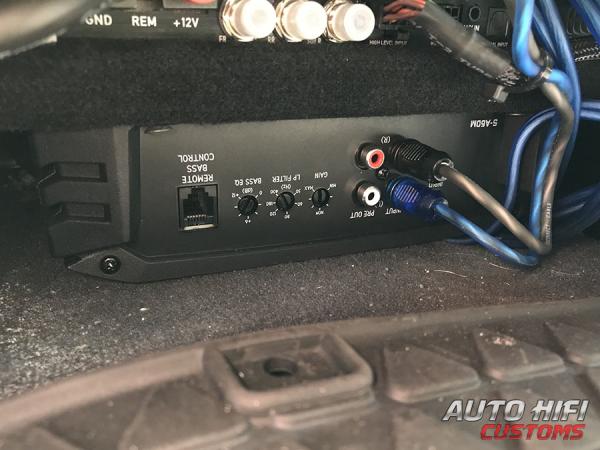 Усилитель Alpine S-A60M это очень интересная модель из моноблоков для сабвуфера в своем бюджете. Усилитель выполнен в компактном корпусе без принудительной вентиляции. С одного торца корпуса расположены разъемы для подключения питания калибра 4 Ga и сабвуфера калибра 8 Ga. С другой стороны находятся тюльпаны RCA для подачи входного сигнала, которые могут работать в двух режимах (низкого или высокого уровня), а также регулировки усилителя. Из регулировок доступна настройка входной чувствительности, фильтр низких частот с плавной регулировкой от 50 до 400 Гц и плавное усиление баса на фиксированной частоте 50 Гц от 0 до 12 дБ. Рядом с кроссовером усилителя есть вход для выносного регулятора громкости, которая докупается отдельно и позволяет водителю управлять громкостью сабвуфера со своего места.