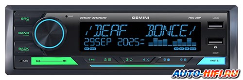 | Deaf Bonce Gemini 750DSP Автомагнитола с поддержкой USB/MP3/iPhone/Android Типоразмер 1DIN |