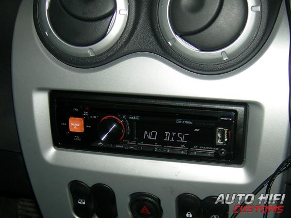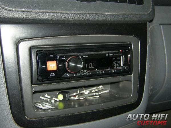 Головное устройство Alpine CDE-170RM позволяет подключить USB (находится на передней панели - когда же USB начнут делать сзади, чтобы из панели ничего не торчало и не мешало ее снять и носить с собой). Разъем находится за ужасной шторкой, которая при открытии и закрытии издает такой ужасный щелчок, что кажется сейчас она сломается. Также на передней панели есть AUX вход, для подключения любого внешнего источника звука. Сзади есть 2 пары линейных выходов, один из которых может быть тыловым или сабвуферным, на выбор. Есть вход дня подключения штатных кнопок на руле (требуется докупить отдельный интерфейс). Магнитола комплектуется стандартным переходником на Евро-разъем, что удобно при наличии авто с аудиоподготовкой.