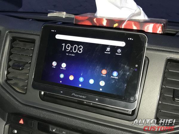 В автомобиле он превращается в головное устройство буквально в одно движение — установкой в базовое устройство Pioneer SPH-T20BT, которое обеспечивает его питанием и объединяет с аудиосистемой. «База» устанавливается в стандартное посадочное место формата 2DIN и содержит встроенный усилитель 4×50 Вт, радиотюнер, USB-порт для проигрывания музыки с флешки, входы для подключения камеры заднего вида и парктроников Pioneer ND-PS1, три пары RCA-выходов для подключения отдельных усилителей. Для настройки звука предусмотрены 13-полосный эквалайзер и функция временных задержек. Управлять всеми функциями Pioneer SPH-T20BT можно через установленное на планшет приложение Pioneer Smart Sync for Tablet. Предусмотрена возможность задействовать штатные кнопки на руле.