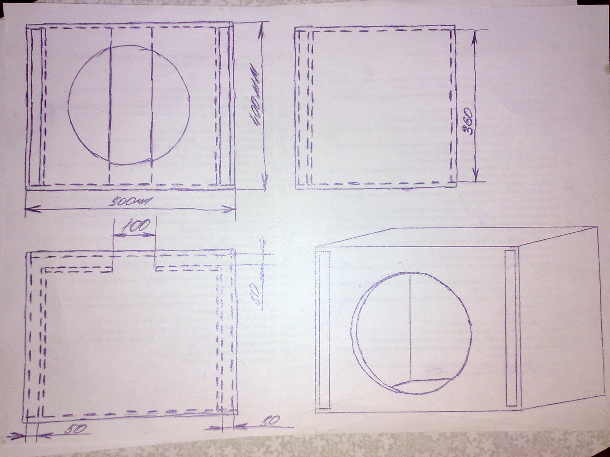 Здравствуйте! Помоготи рассчитать короб под саб ORIS AMW 12, слышал они объем любят... Ящик думаю ФИ, с щелевым, чертеж внизу, думаю размеры 500х400х400 мм. Объем с стенками 20 мм получается 50 литров, это для него не мало будет?