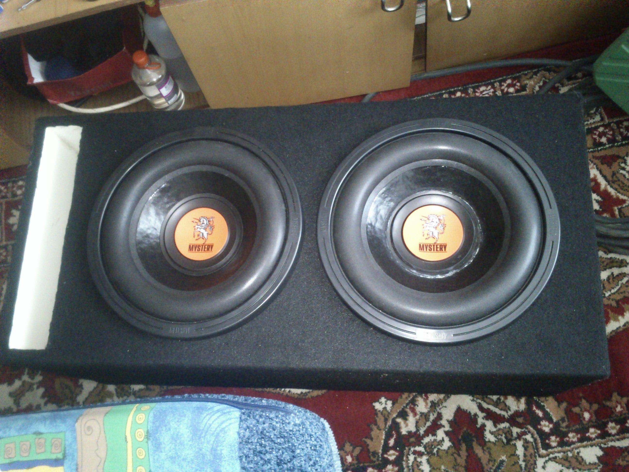 ГУ Alpine CDE-123R, фронт Focal Polyglass 165 V1, тыл Hertz ESK 165, усь Mystery MA4.300, 2 саба Mystery MO-12S в коробе с фазиком и усь Art Sound XD 1200.1