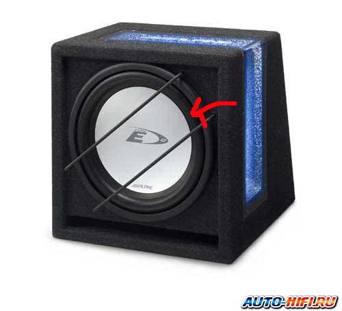 Здравствуйте! Недавно перестал играть саб alpine е12. А после нажатия на место, обозначенное стрелочкой он вроде опять заиграл. Объясните причину пожалуйсто.