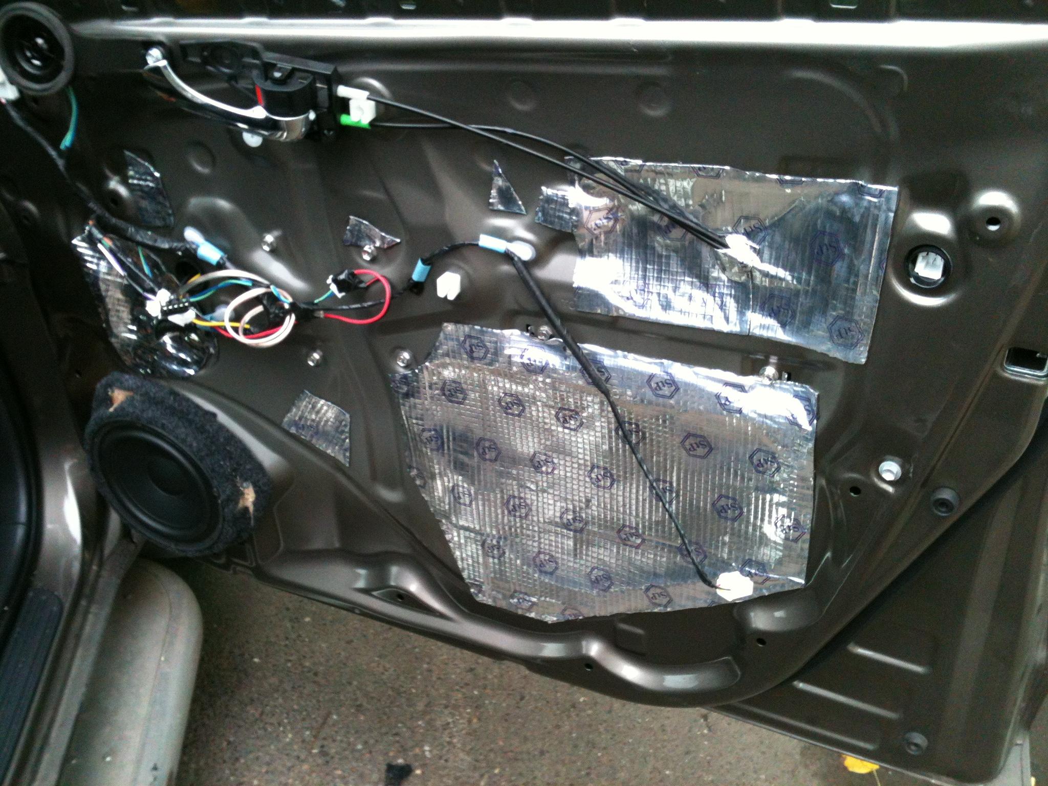 4. Антискрип - его на фотках нет, он похож на черный паралон - из него нужно сделать тунель для динамика к отверстию в пластиковой двери, и полностью из нутри обклеить пластиковую панель двери, что не подпевала. Ну и все! за 1 выходной две двери вполне осилишь своими силами. Успехов!