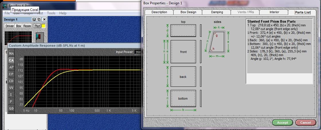 Сверху (lpf) - саб режется примерно на 80Гц. Тогда распечатай, то что я тебе посчитал, и отнеси тому у кого будешь заказывать (у нас короб на 57 литров ФИ стоит от 1600р до 2500р).