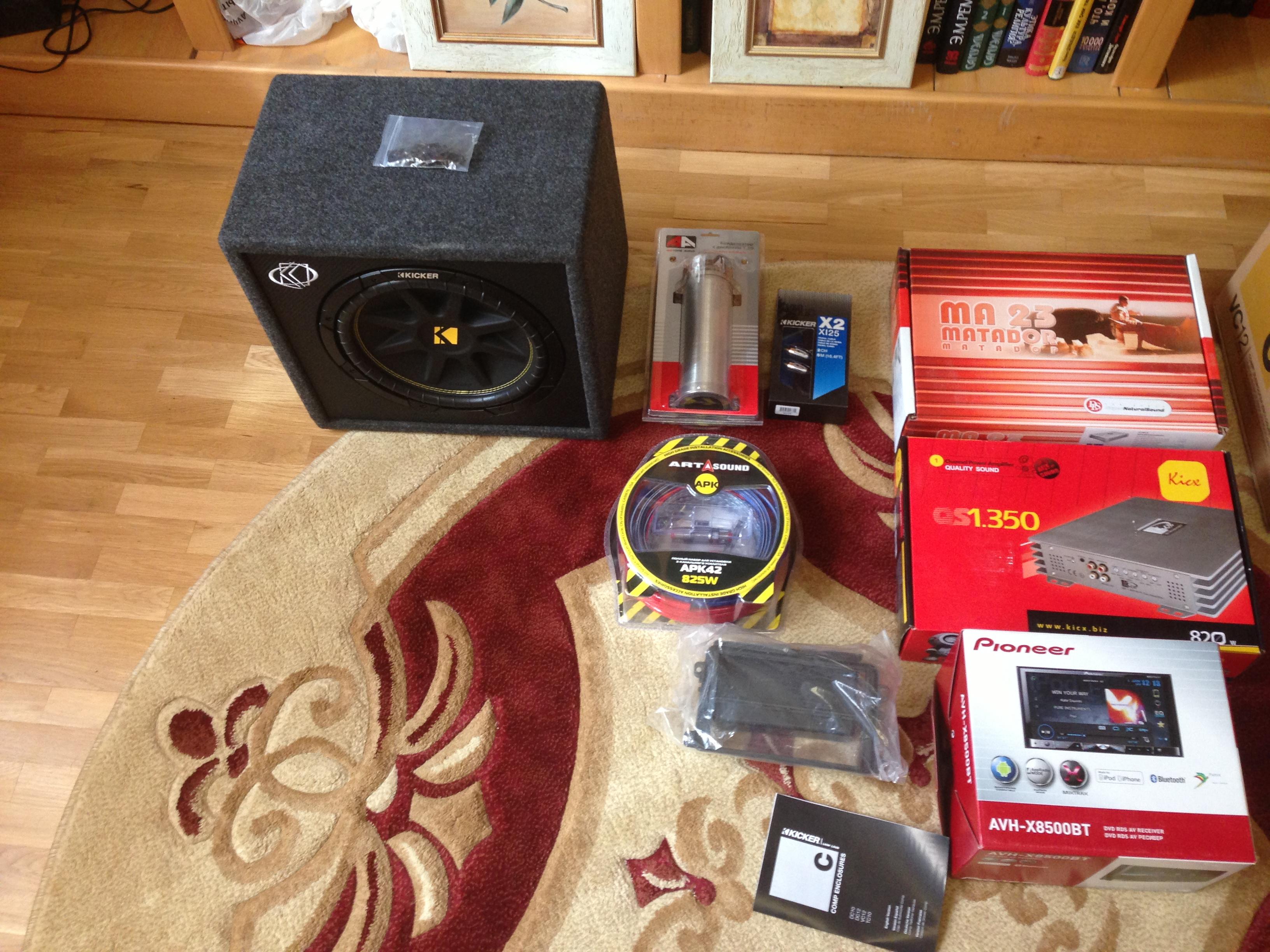 Автомагнитола JVC KW-R930BT в Toyota Caldina II Сабвуфер Alpine SWG-1044 в Haval H3 Усилитель Ural BV 1.800 в Haval H3 Усилитель Hellion HAM8.100DSP в Audi Q5 Сабвуфер Focal Sub 12 Dual в Lada Vesta