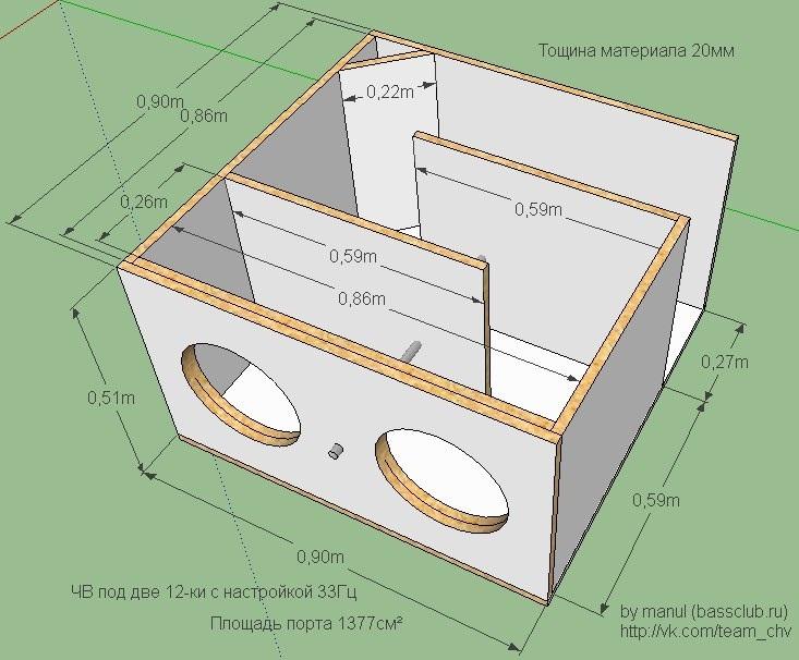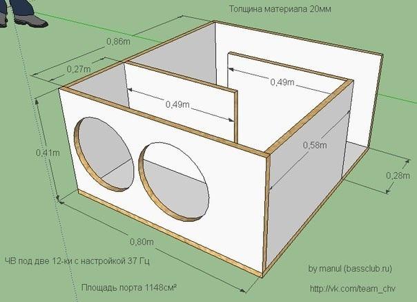 Я хоть чв никогда не занимался, но расчеты более менее представляю. Для двух двенашек площадь порта должна быть больше. Да и туннель лучше делать сужающимся.