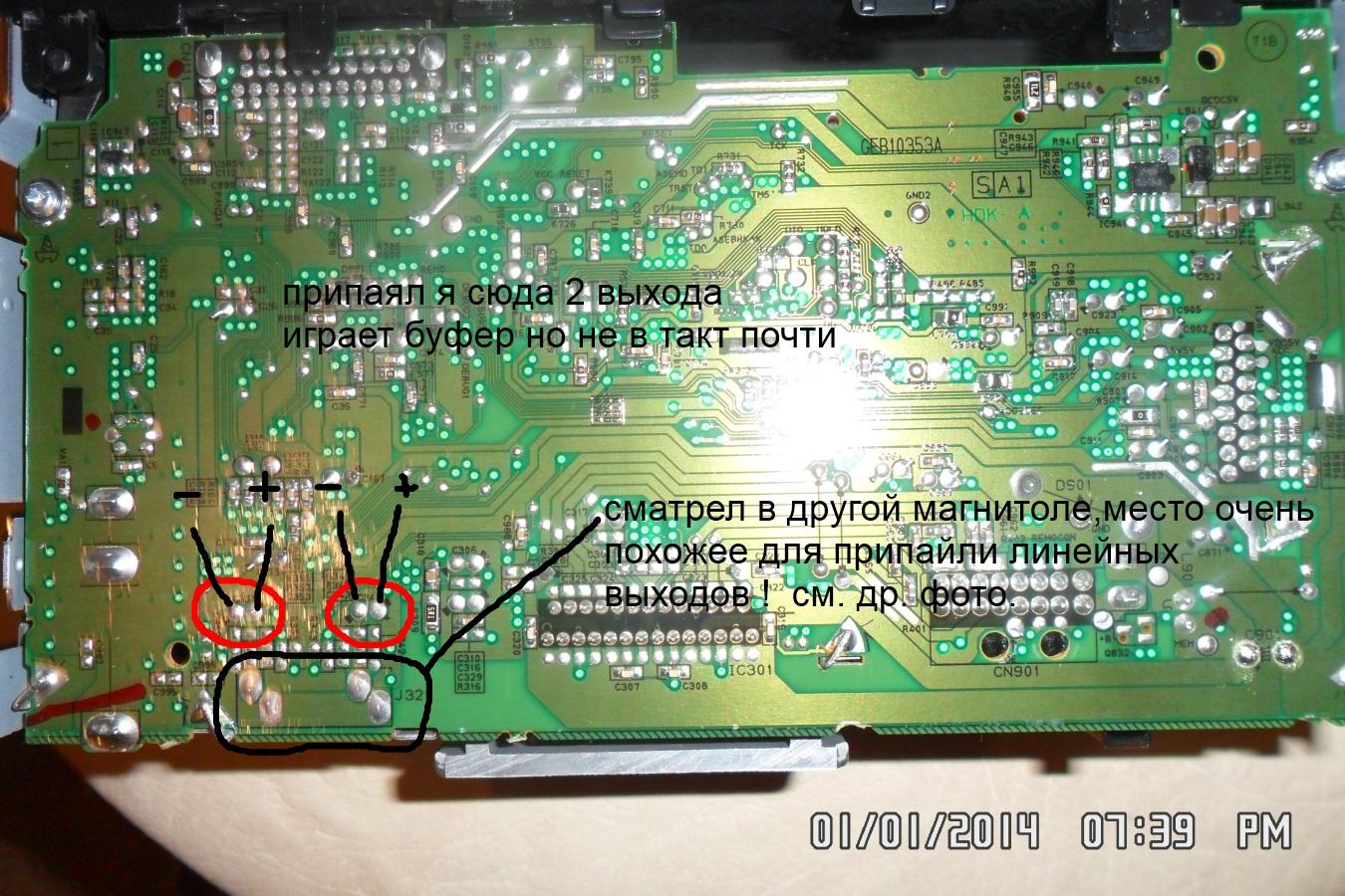 Привет всем, кто может помочь мне . Магнитола JVC kd-x100 нет линейных выходов под усилитель, кто может сказать мне куда на плате можно припаять самодельные выходы?