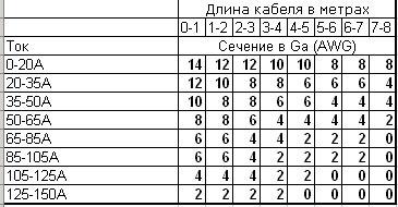 1)От АКБ 0 или 2 Ga до дистрибьютора (в зависимости от суммарной силы тока потребления всех усилителей), по 4-8 Ga до входных терминалов усилителей.