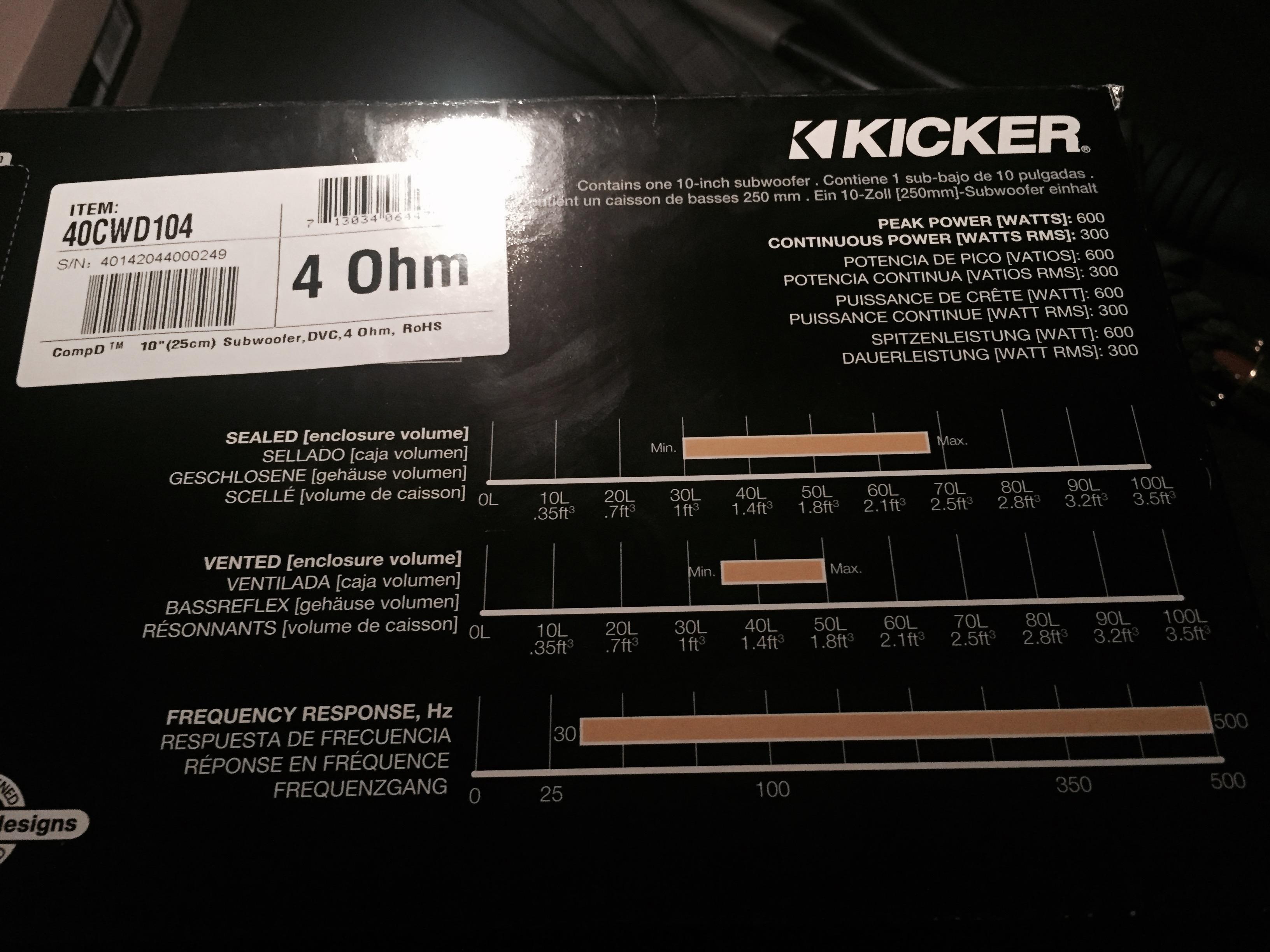 Kicker CWD104 к сожалению пока не удалось послушать, по-этому адекватную оценку его звучанию дать не могу!