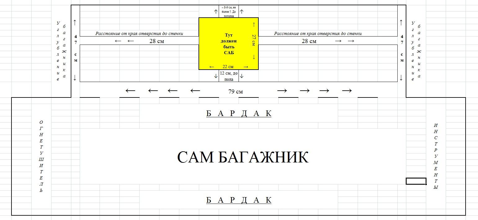 Имеем голову Alpine CDE-W233R, фронт Ground Zero GZFC16X, тыл не помню. Усилитель Phoenix Gold Z500.4, будет играть фронт и саб мостом. Посоветуйте динамик саба! Будет устанавливаться в багажник с выходом в салон, смотрим фото. Так же прилагаю чертеж, со всеми замерами. Я тут присмотрел один сабик (мне он так нравится :)) ) MTX RT12-04 под него будет ЗЯ, пойдет ли саб под усилитель? Бюджет динамика 5 т.р. под представленные замеры. Спасибо большое.