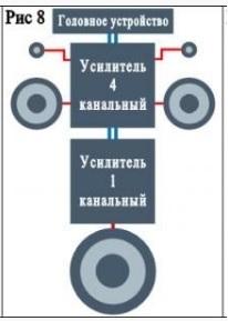 вариант 1. фронт делится Y кабелем и к усилителю приходит 4 штекера + саб, тыл не задействован