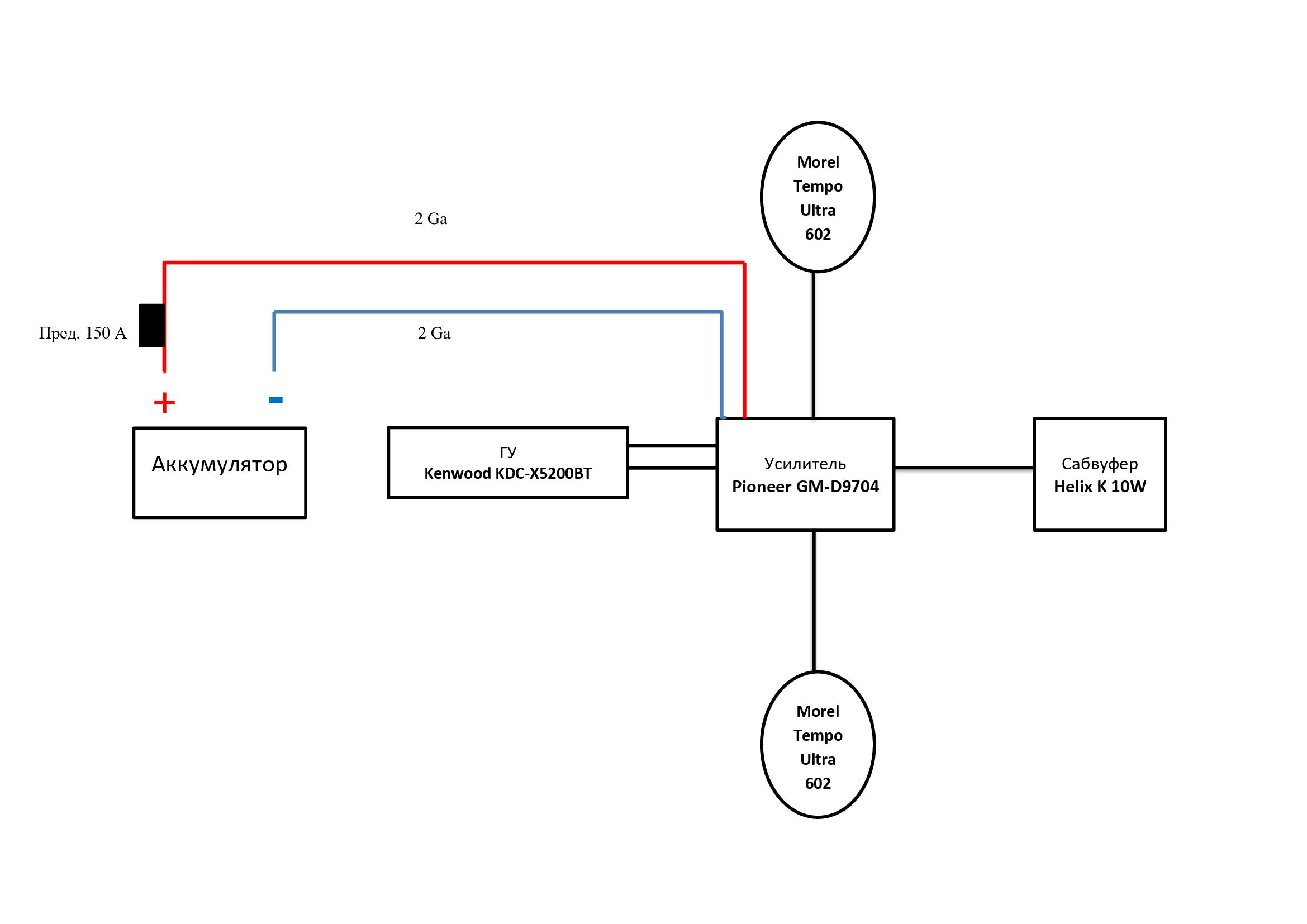 Добрый день! Подскажите, правильно ли на данной схеме акустической системы указаны сечение силового провода и номинал предохранителя, с учетом компонентов из которых состоит данная система?!