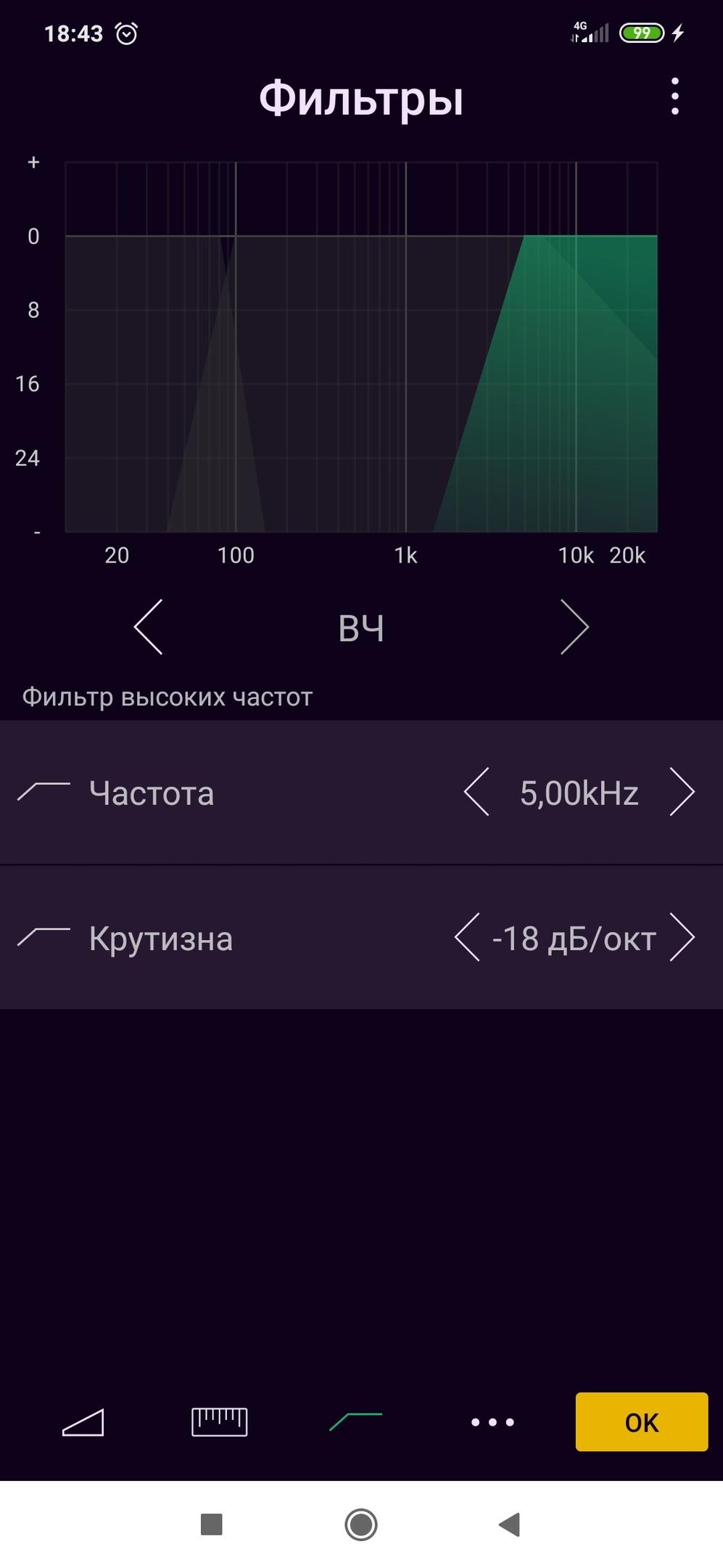 вч: 5,00kHz...крутизна -18дб/окт