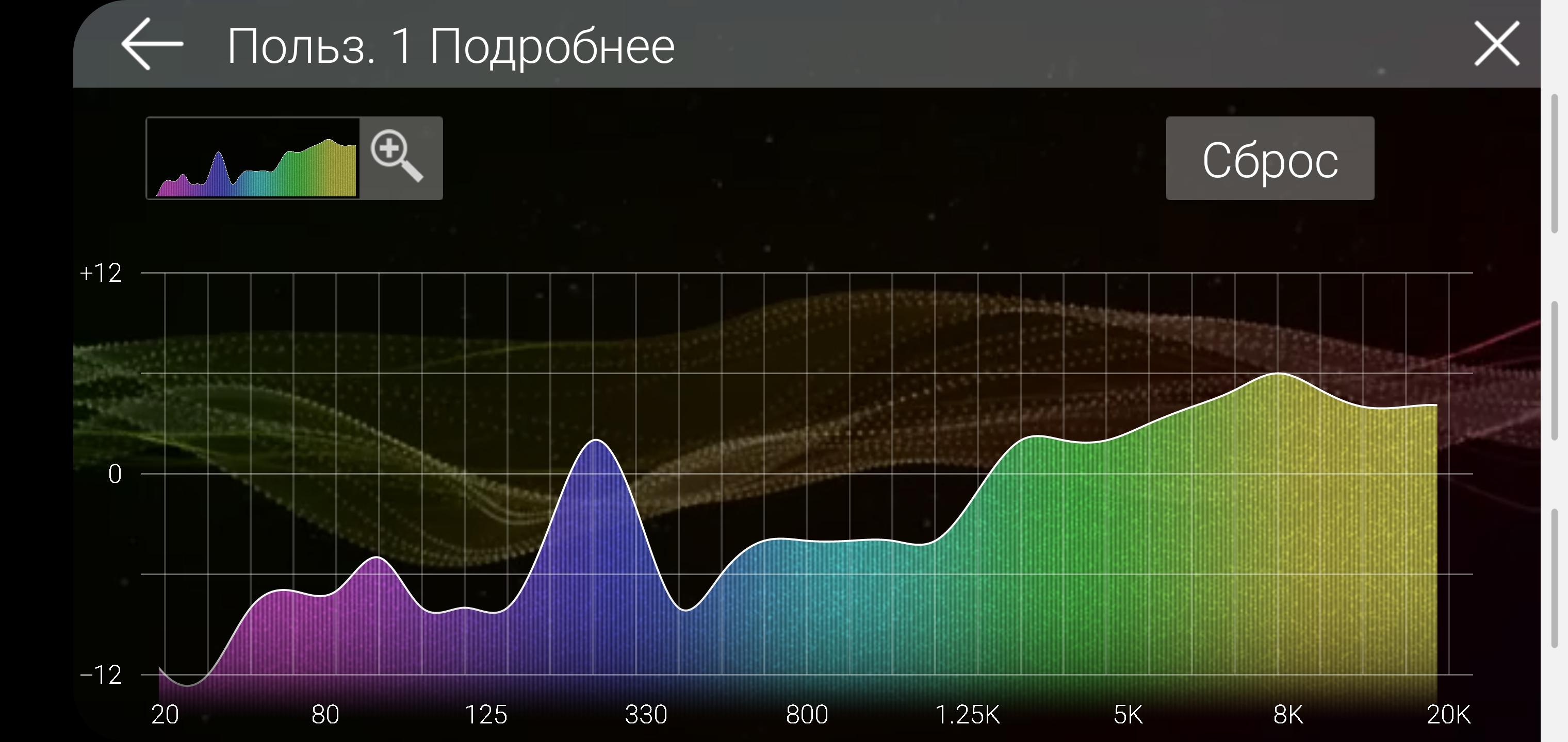 2. Далее делаем эквалайзер плоским. Его вообще лучше трогать в последнюю очередь. На вашей магнитоле может быть по умолчанию включена функция D.BASS - отключаем, да и вообще offнуть все улучшайзеры. Так же у Вас должна быть отключена фильтрация на усилках, кроме сабсоника. Заметил, что было сильно придавлено 30 гц на эквалайзере, в таком случае я бы лучше воспользовался сабсоником на усилителе, чем извращаться над сигналом в эквалайзере.