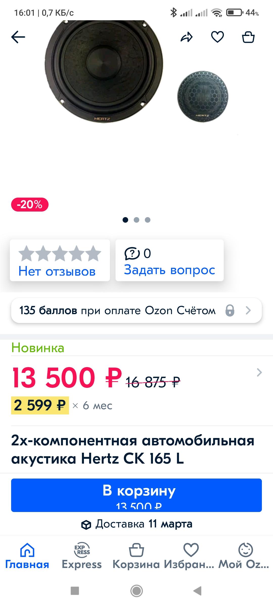Хотел заказать Hertz CK 165 ... дня три назад смотрел- были 13500...