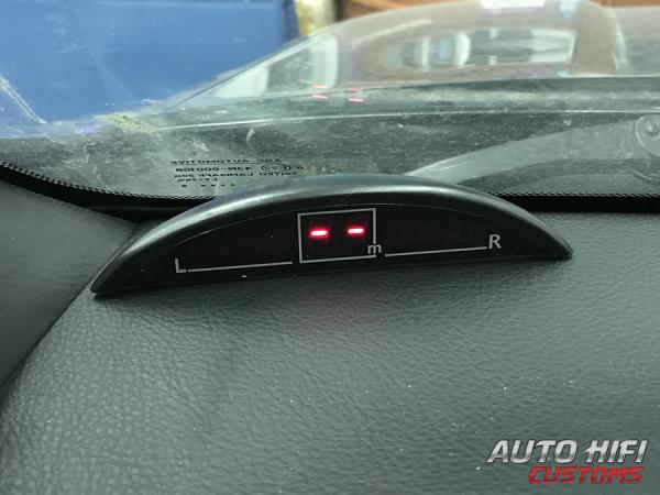 При включении передачи «задний ход» парковочный радар включается и, по мере движения автомобиля, сигнализирует водителю о расстоянии до препятствия: загораются соответствующие цветовые секторы, высвечивается цифровое значение на табло, звучит бипер с переменной частотой. |