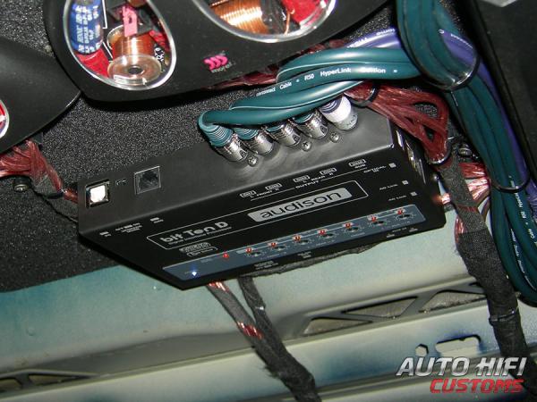 При использовании bit Ten D с усилителями Audison серий Thesis TH и Voce наилучшим решением будет воспользоваться полностью цифровым аудиотрактом до усилителей. Для этой цели аудиопроцессор оснащен цифровым аудиовыходом AD Link (специальная версия витой пары Cat 5s), а цифро-аналоговое преобразование аудиосигнала будет проводиться во встроенном ЦАП (DAC) усилителей. При использовании цифрового аудиовыхода количество независимых каналов настройки bit Ten D увеличивается до 8, тогда как при использовании аналоговых выходов доступны 5 каналов настройки. Возможна также комбинация аналоговых и цифрового выходов, с суммарным числом каналов настройки до 8. Настройка звучания проводится независимо для каждого из выходных каналов и включает полный функциональный набор, востребованный в современных инсталляциях. Графический эквалайзер 31-полосный 1/3-октавный, кроссовер задается любого назначения (ФНЧ/ФВЧ/ПФ) и типа (Linkwitz/Butterworth) с произвольным выбором частоты среза во всем диапазоне слышимых частот и крутизны характеристики затухания фильтров. Также предлагается инвертор фазы 0/180 градусов, схема временных задержек с широким диапазоном и небольшим шагом для точной настройки, и регулировка уровня в каждом из каналов. Процесс настройки проводится с подключенного по USB-интерфейсу компьютера с помощью программного обеспечения bit Ten software, отличающегося исключительной наглядностью и простотой интерфейса. Для оперативного управления основными параметрами, к примеру – регулировки громкости при использовании источника звучания с цифровым выходом, служит выносная панель управления DRC. С помощью DRC можно также проводить переключение между сохраненными в памяти процессора разными вариантами настройки.