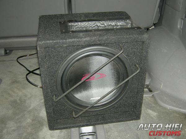 Всем этим требованиям соответствует в лучшем случае треть 8" сабов, и пара-тройка 10". И прямо удача, что есть саб Alpine SBG-1044BR , сочетающий и невысокое требование к подводимой мощности и высокую опорную чувствительность и установлен в короб с фазоинвертором. Поэтому тут выбор в принципе фактически однозначный ))