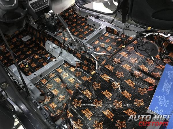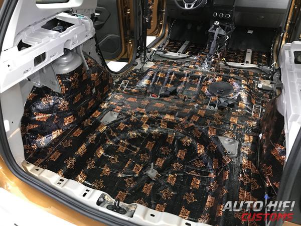 Вибродемпфер профессионального уровня, в производстве которого используется особая рецептура позволяющая снизить вес материала при этом увеличивая его эфективность, представляет собой мастику армированую алюминевой фольгой.