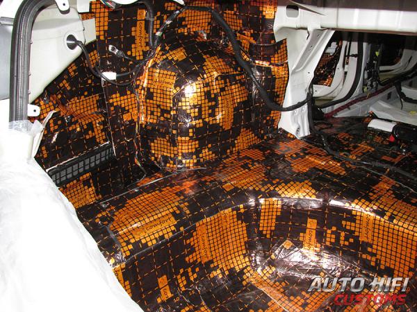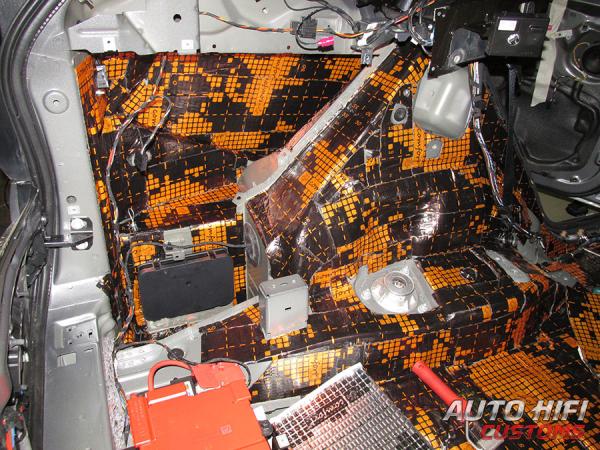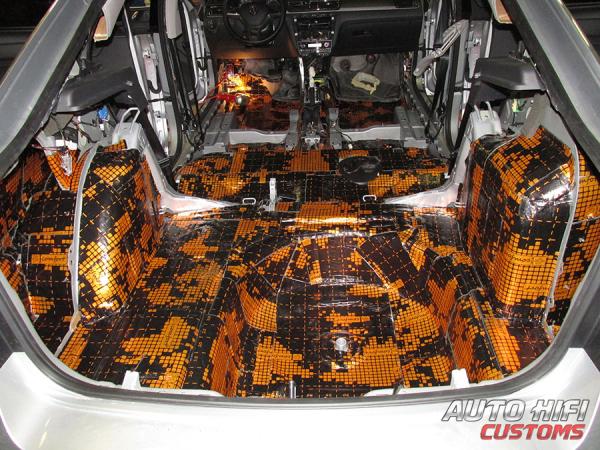 Вибродемпфер профессионального уровня, в производстве которого используется особая рецептура позволяющая снизить вес материала при этом увеличивая его эфективность, представляет собой мастику армированую алюминевой фольгой.