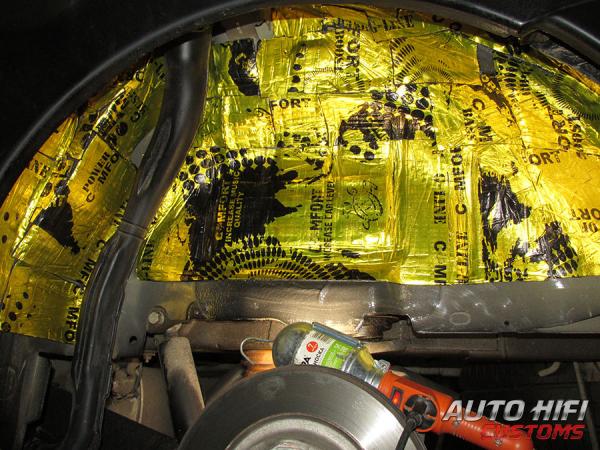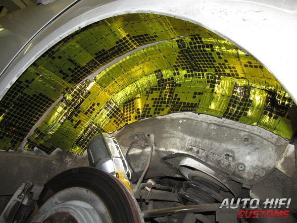 Универсальный вибродемпфер с повышеной адгезией к металлу, представляющий собой мастику из смеси специальных полимеров армированую алюминевой фольгой.
