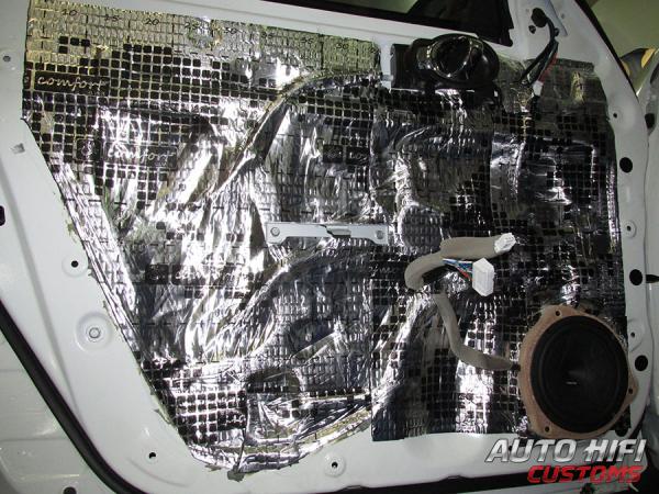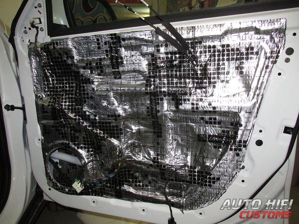 Классический вибродемпфер начального уровня, представляющий собой бутилкаучуковую мастику, армированную алюминиевой фольгой.